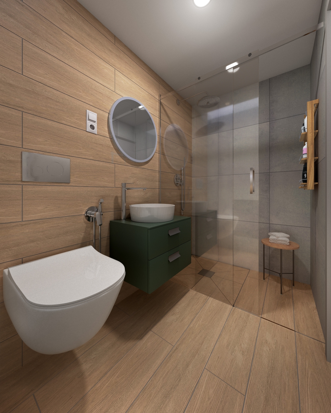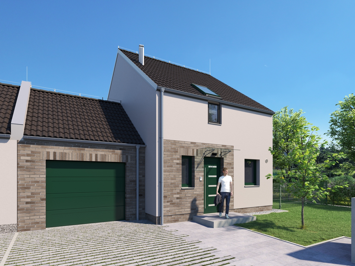 Rodinný dům K 90 je navržen jako jednopodlažní objekt s obytným podkrovím zastřešený sedlovou střechou. V rámci projektu Újezd u Brna je koncipován jako řadový dům nebo jako dvojdům. Součástí domu je garáž, která je od domu provozně oddělena. Jedná se o nejmenší dům z naší nabídky, dispozičně spadá do kategorie 4+kk. Dům je navržen velmi efektivně s minimalizací komunikačních ploch. Hlavní vstup do objektu je z ulice do vstupní haly , ze které je přístupné technické zázemí a WC. Zbývající část 1.NP zaujímá hlavní obytný prostor s jídelnou a kuchyňským koutem. Z tohoto prostoru je po lehkém ocelovém schodišti přístupné 2.NP. Ve 2.NP jsou umístěny tři pokoje a koupelna.
