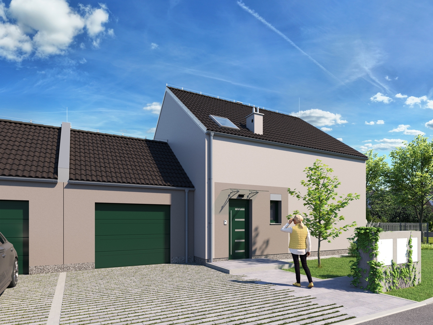 Rodinný dům K 120 je navržen jako jednopodlažní objekt s obytným podkrovím zastřešený sedlovou střechou. V rámci projektu Újezd u Brna je koncipován jako volně stojící dům, dvojdům nebo jako řadový dům. Dispozičně spadá do kategorie 5+kk. Součástí domu je garáž, která je od domu provozně oddělena. Hlavní vstup do objektu je z ulice do vstupní haly a dále pak do chodby se schodištěm, ze které je přístupný hlavní obytný prostor s jídelnou a kuchyňským koutem, dále koupelna s technickým zázemím a pokoj. Ve 2.NP jsou umístěny tři pokoje a koupelna.